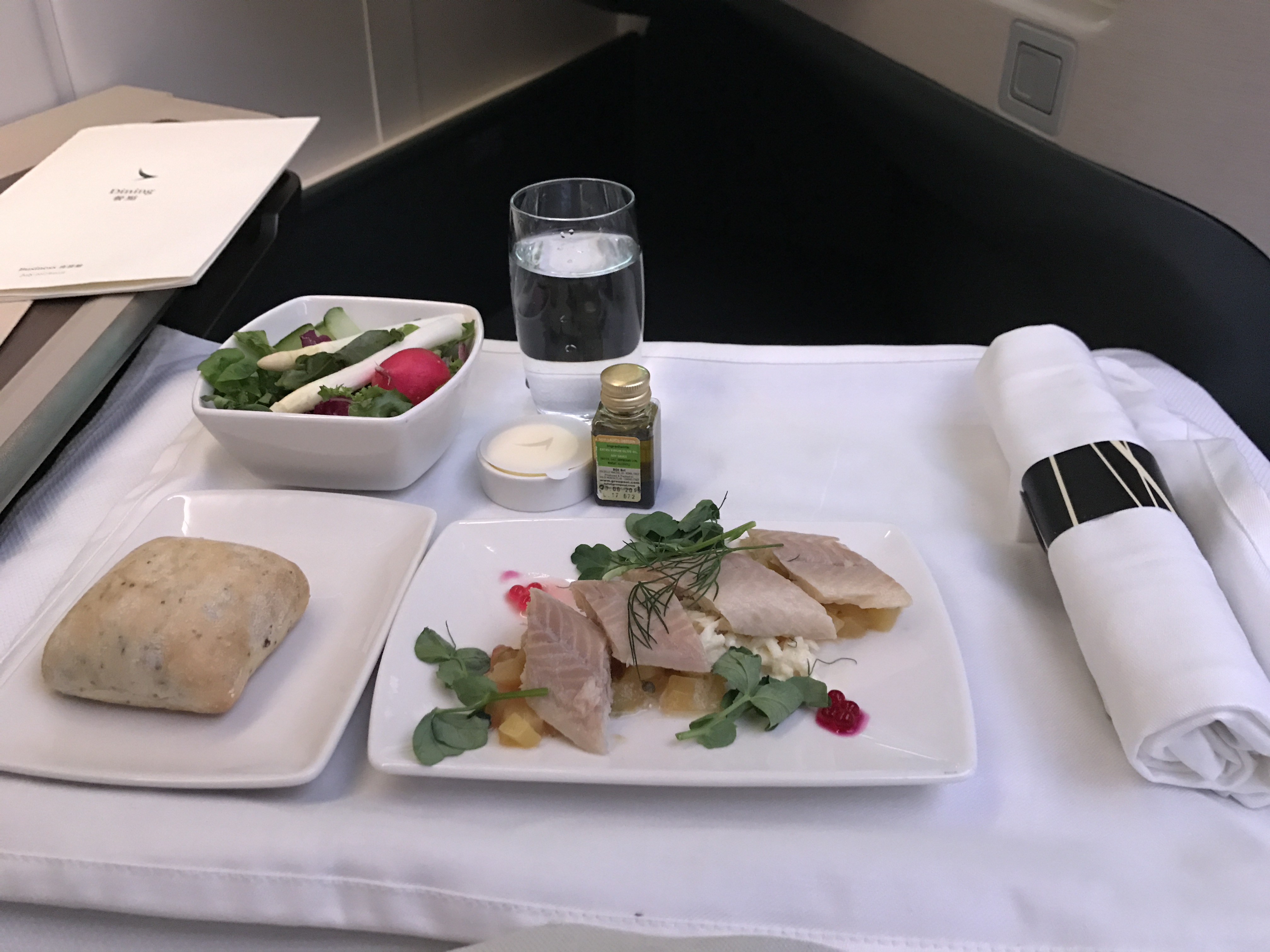 Table service is one of the perks of flying business class.